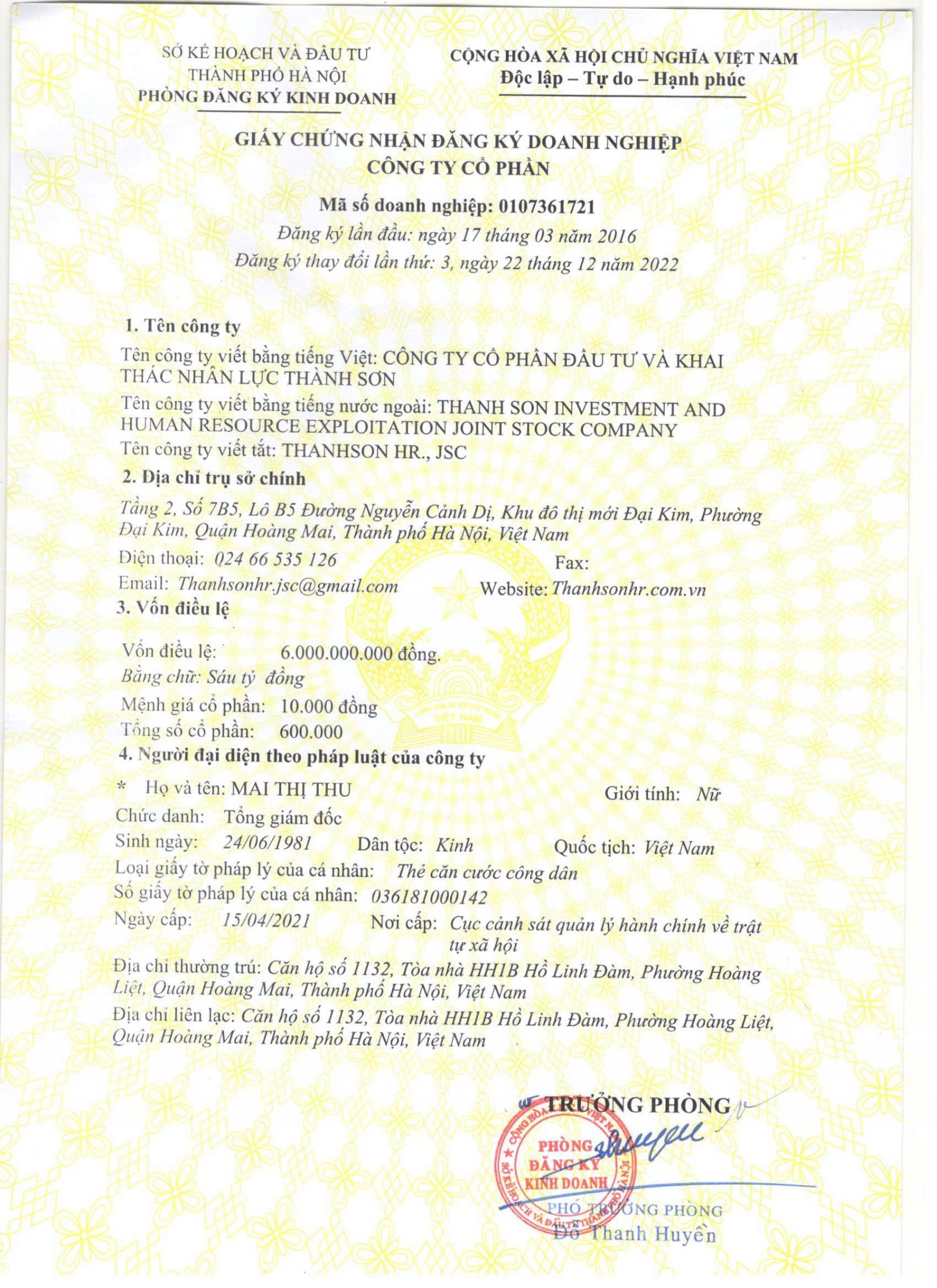 1. GIẤY CHỨNG NHẬN ĐĂNG KÍ DOANH NGHIỆP
