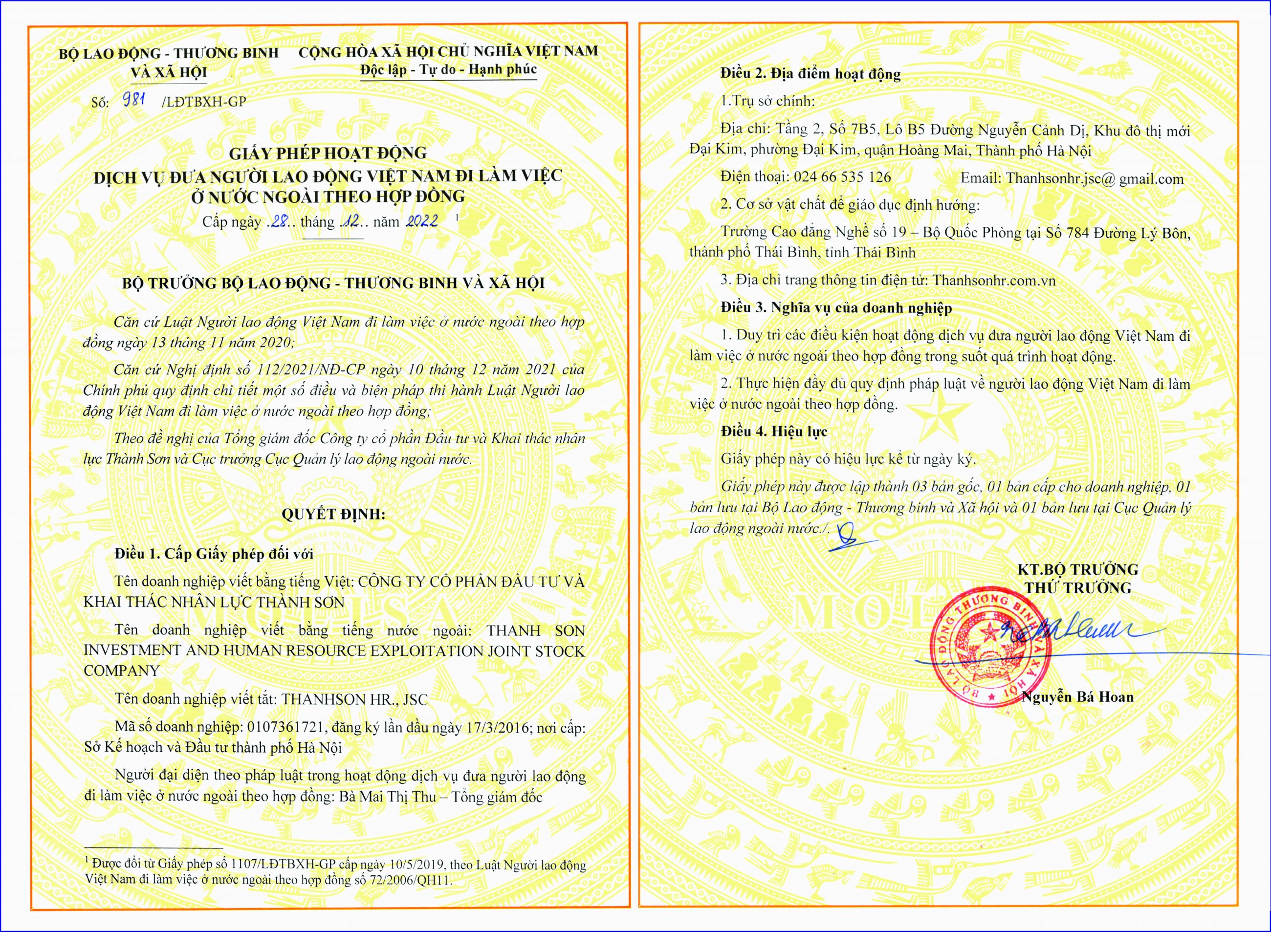 2. GIẤY PHÉP HOẠT ĐỘNG DỊCH VỤ ĐƯA NGƯỜI LAO ĐỘNG ĐI LÀM VIỆC Ở NƯỚC NGOÀI